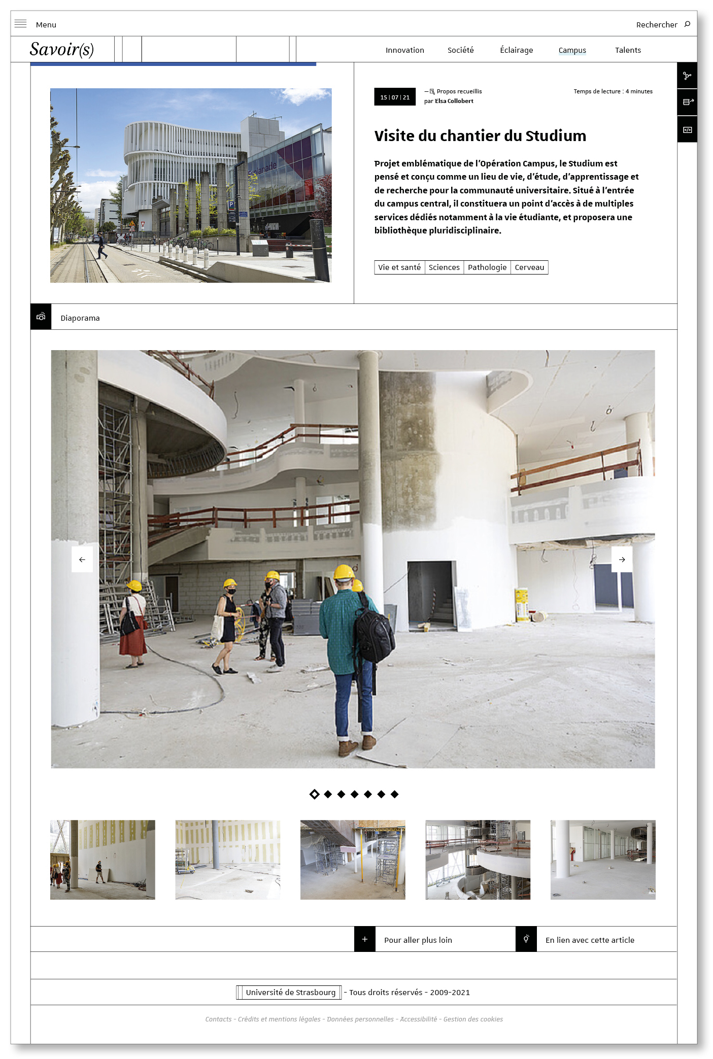 Ce nouveau média éditorialisé a pour objectif de partager tout ce qui fait la richesse de l’Université de Strasbourg au travers de ses missions quotidiennes. On y trouvera notamment des portraits d’enseignants-chercheurs, d’étudiants, de personnels ; des articles sur l’actualité de la recherche ; des reportages aux thématiques variées : sciences en société, vie étudiante, initiatives, projets, etc.